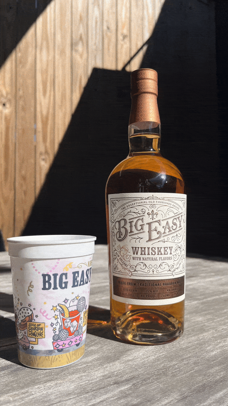 Infused with an Old Fashioned blend of herbs, spices, botanicals, and fruit, this new whiskey approached Larkin Collective to capture what it means to be locally made in New Orleans. Their tagline, Easy for When New Orleans Isn't, describes the care-free nature of its use. Big Easy Whiskey is pour-to-drink, making it perfect for crawfish boils and on the parade route. It also blends beautifully in a variety of cocktails. This convenience and versatility make it the perfect liquor for any New Orleanian.