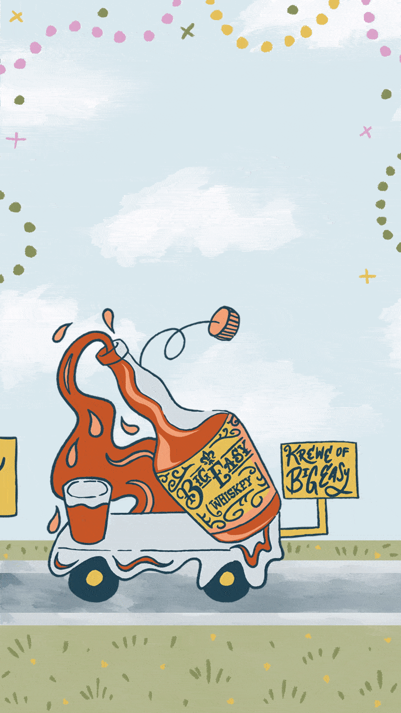 Larkin Collective was tasked with turning Big Easy’s ethos into compelling campaigns. Most notably, we developed the Krewe of Big Easy Whiskey for the 2026 Mardi Gras season, a campaign built around custom in-house illustrations showcasing the versatility of the spirit across cocktail formats and venues. The campaign quickly gained traction, with notable local venues including Emeril’s, The Chloe, Parkway Bakery & Tavern, Anna’s, and Peychaud’s joining as featured “Krewe Members.” This diversity of venues reinforced the brand’s core message: equal parts accessible and elevated. This campaign extended across multiple touchpoints, including dedicated website landing pages, custom apparel, venue-specific Mardi Gras cups, and a robust social and advertising presence, creating a cohesive, celebratory brand moment both on and off the parade route.