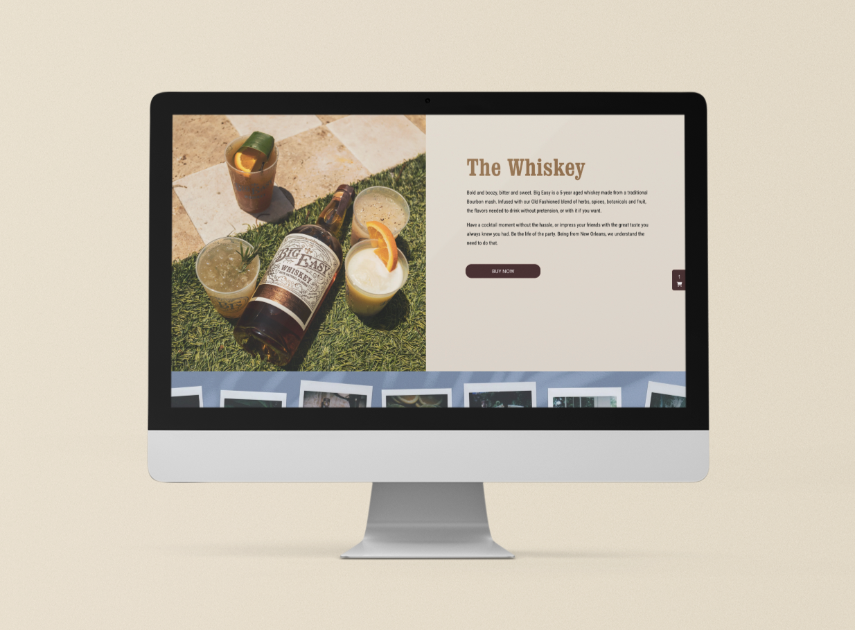 Big Easy Whiskey’s website also reflects the city’s vibrance and character through dynamic, textured photography, bold typography, and a diverse library of cocktail recipes.