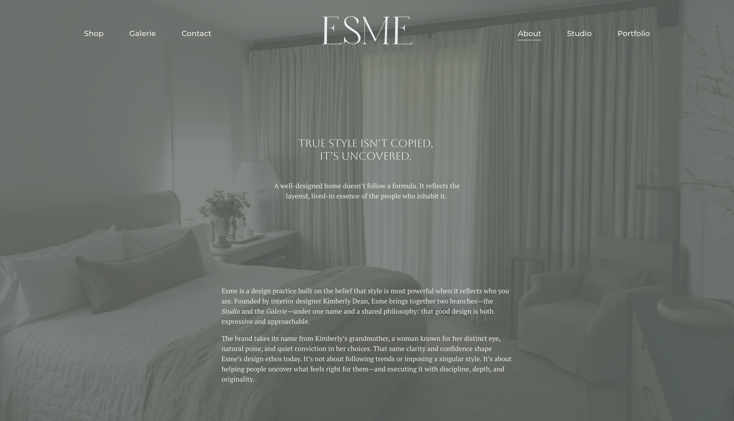 Based in Jackson, Wyoming, Esme encompasses both an interior design studio (Studio Esme) and a high-end retail destination (Galerie Esme). Founder Kimberly Dean approached Larkin Collective to help her workshop the business from the ground up. Through consultation and brainstorming sessions, Larkin Collective helped Kim land on the name, Esme (after her grandmother), and create an umbrella that would house the two branches of the business. These elements were the foundation to everything that would come next.