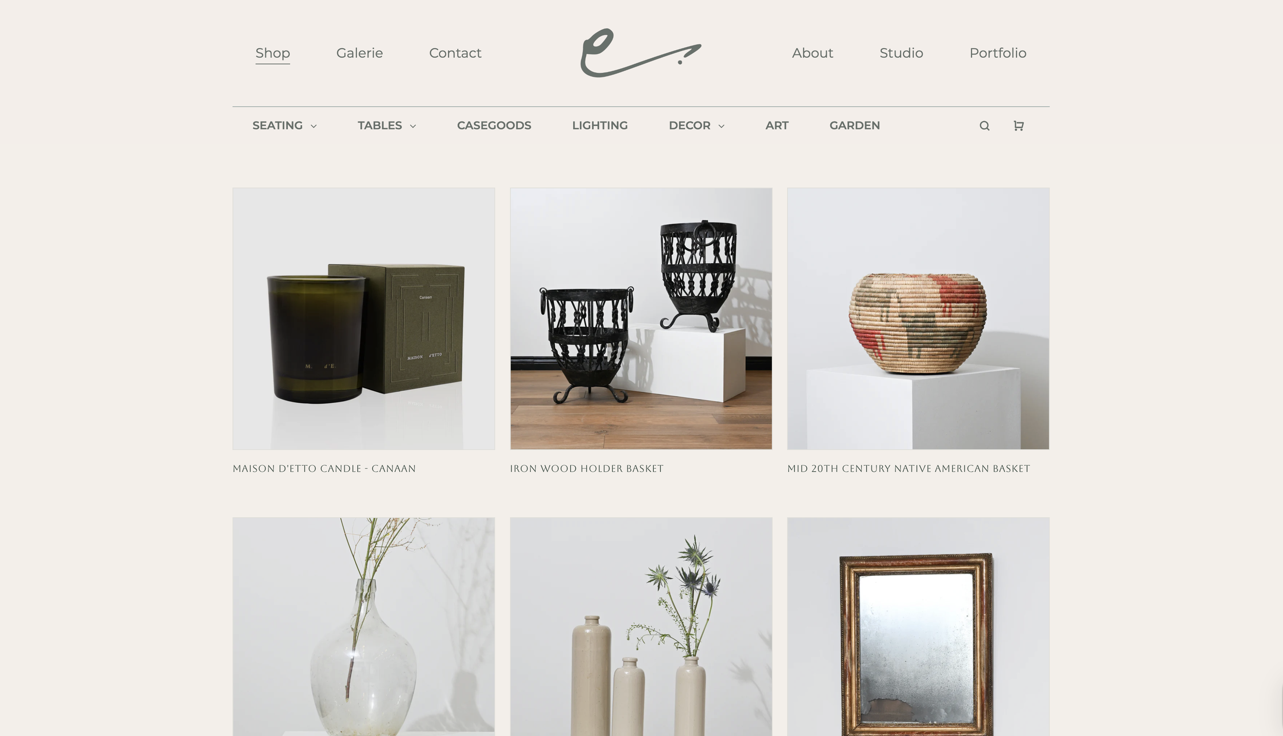 Larkin Collective began by developing distinct, yet related branding for the two branches of the business. While unified by a shared color palette, each branch of the business leans into its own tonal emphasis. The Studio is grounded by a deep green hue with brown accents, while the Galerie is associated with a lighter cream shade, more suitable for e-commerce accessibility. This system allowed for clear differentiation without sacrificing cohesion.